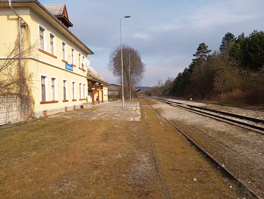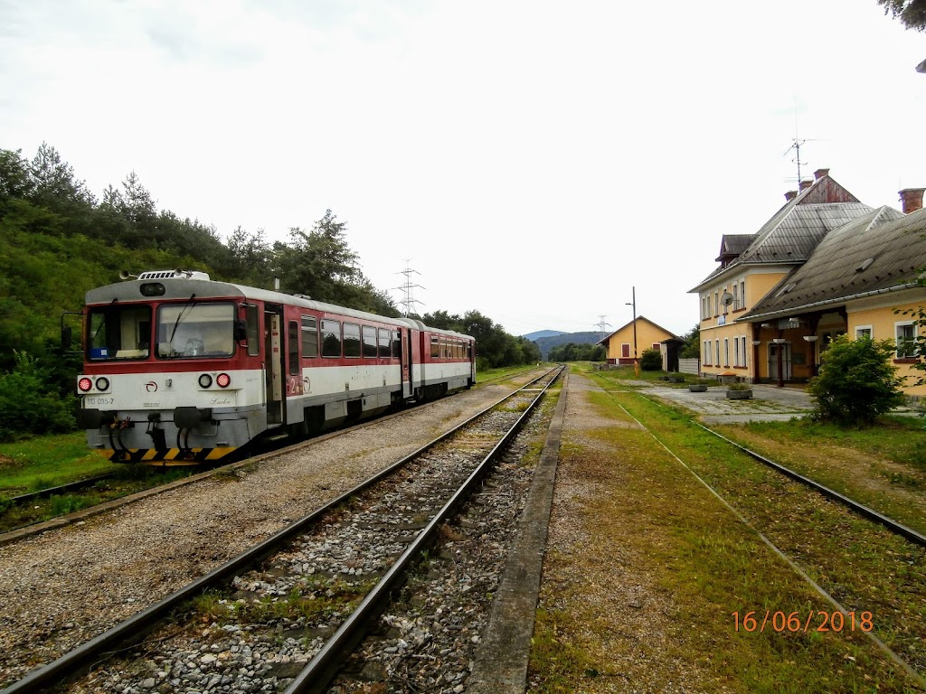Romantická stanička na okraji Vaďoviec. Vláčiky stále premávajú a idú načas.