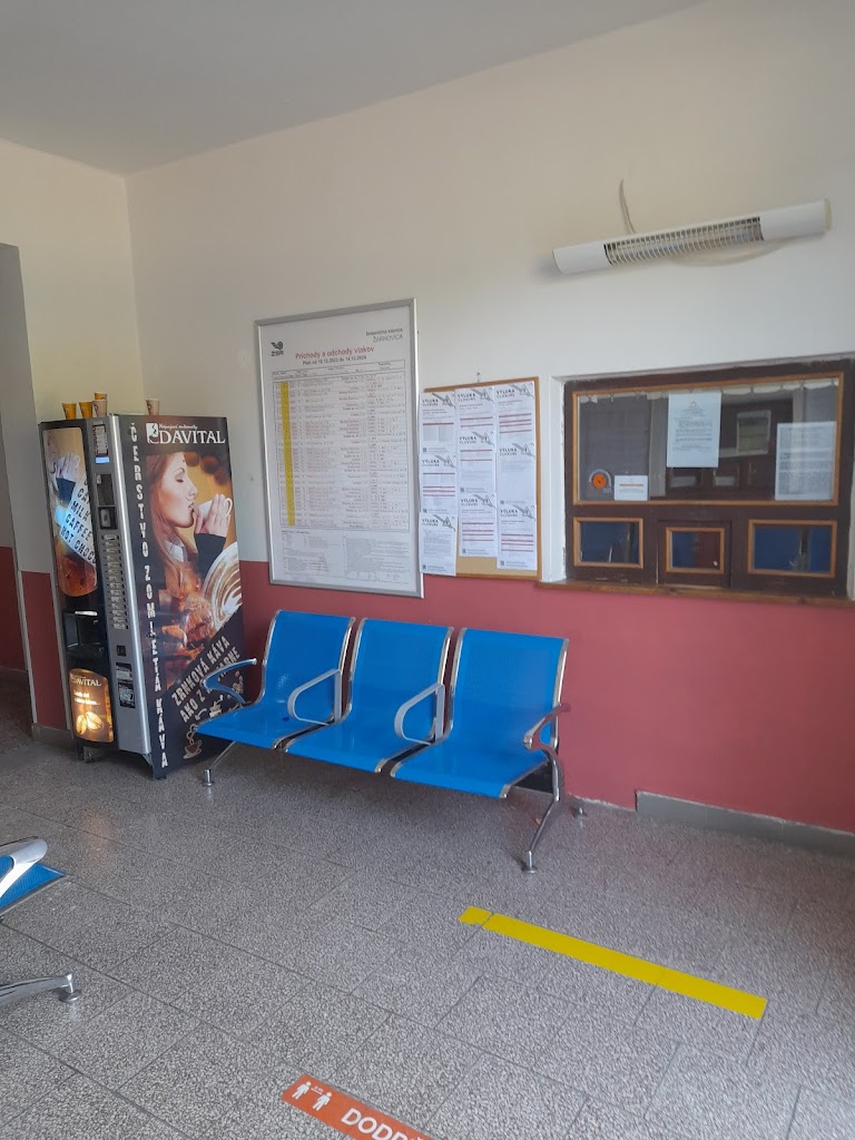 Vonku zopár lavičiek, vnútri čakáreň spojená s predajom lístkov a 1 automatom na kávu. Vonkajšie aj vnútorne priestory boli čisté.